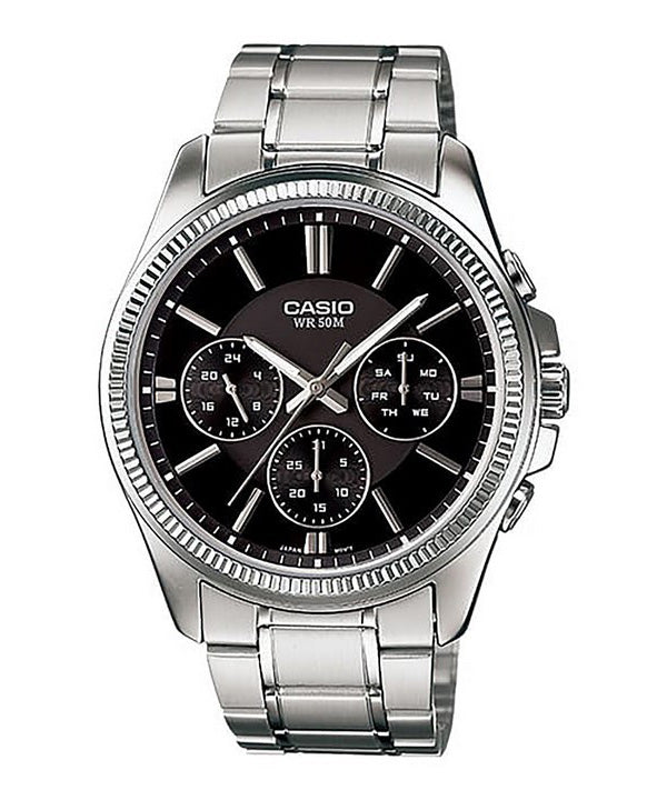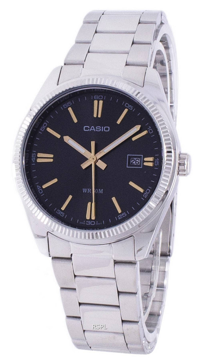Montre Casio Enticer analogique en acier inoxydable avec cadran noir et quartz MTP-1375D-1AV MTP1375D-1 pour homme