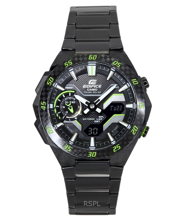 Montre chronographe analogique Casio Edifice Slim Line en acier inoxydable avec cadran vert solaire EFS-S570D-3A EFSS570D-3 100M pour homme