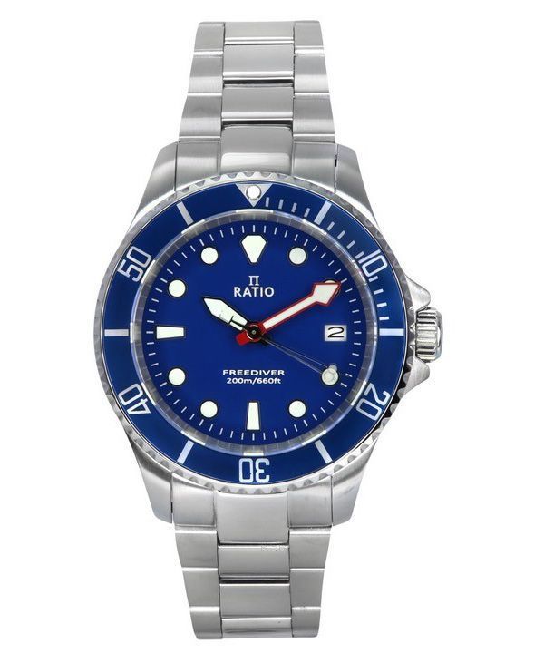 Ratio Montre pour homme Ratio FreeDiver Sapphire en acier inoxydable avec cadran bleu et quartz RTF033 200M