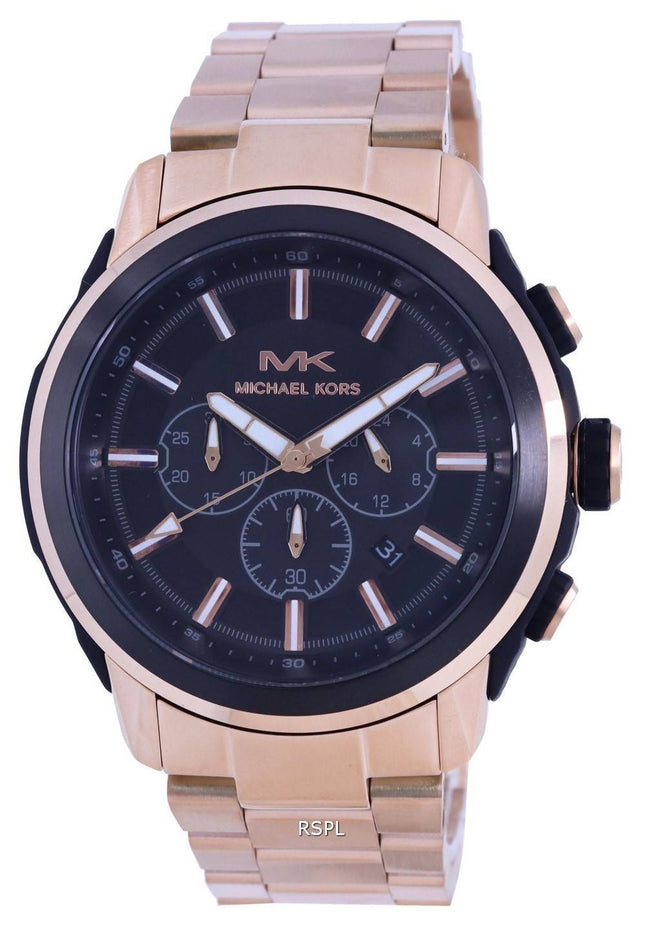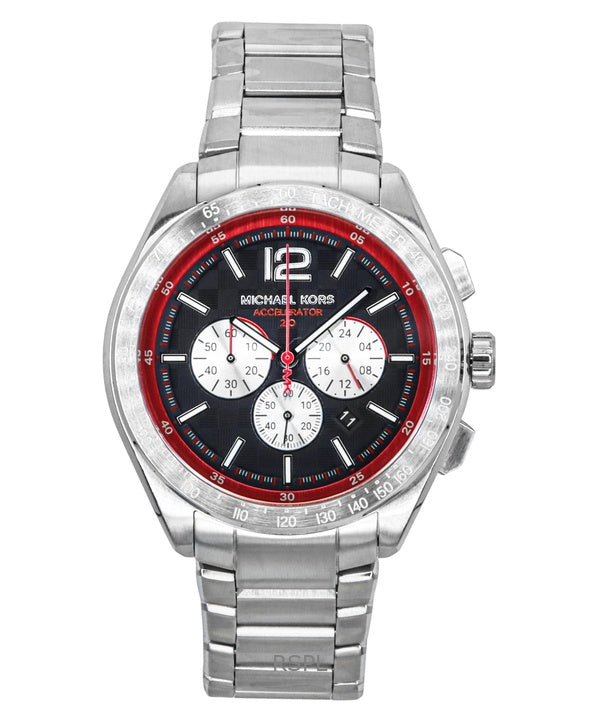 Michael Kors Montre homme Michael Kors Runway Chronograph en acier inoxydable avec cadran noir et quartz MK8157 100M remise à neuf