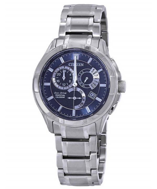Citizen Montre homme Citizen Eco-Drive GMT radiocommandée chronographe Super Titanium cadran bleu AT8238-84L 100M