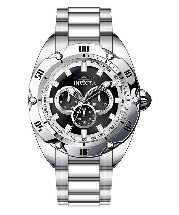 Invicta Montre homme Invicta Speedway Chronograph GMT en acier inoxydable, cadran noir, mouvement à quartz 49365