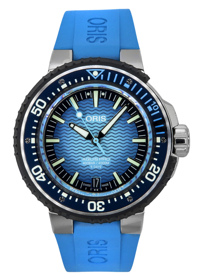 Montre de plongée automatique Oris Aquis Pro pour homme, bracelet en caoutchouc, cadran bleu, 01-400-7777-7155-Set, 4 000 m