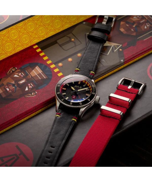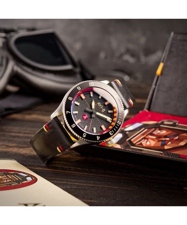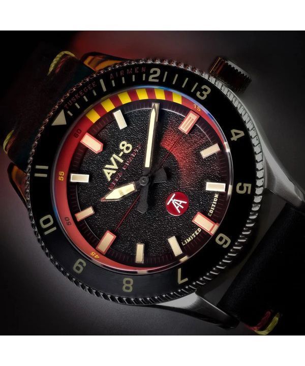 AVI-8 Flyboy Tuskegee Airmen Édition limitée Licata Cadran noir Quartz AV-4103-01 Montre pour homme avec bracelet supplémentaire