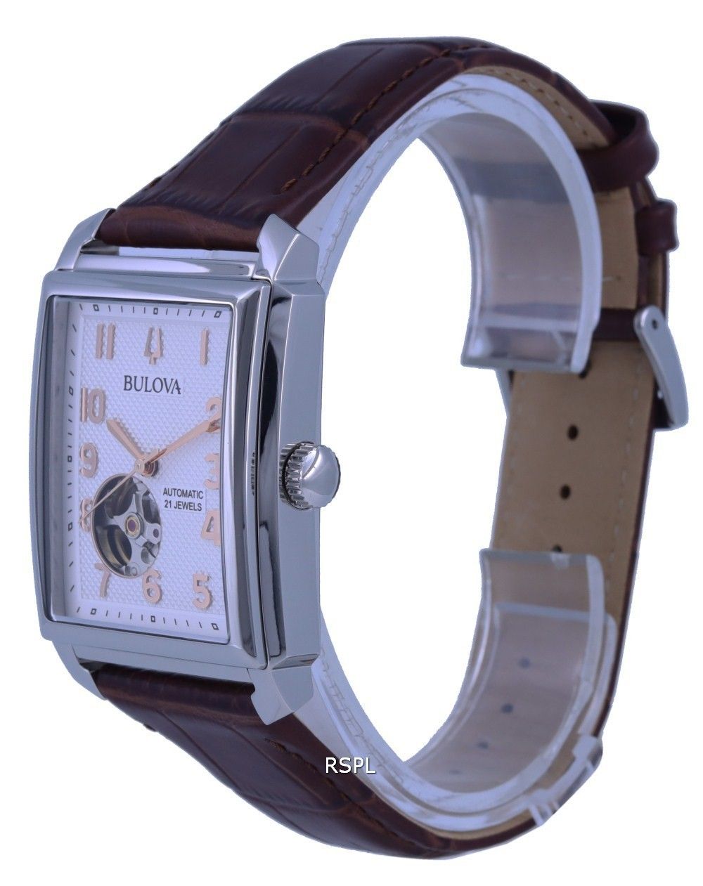 Bulova Sutton cadran blanc bracelet en cuir automatique 96A268 montre pour homme
