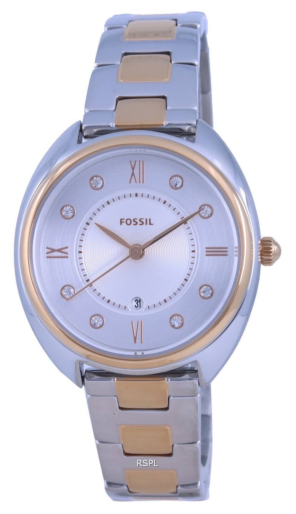 Montre Fossil Gabby Cadran Blanc Deux Tons Acier Inoxydable Quartz ES5072 Montre Femme