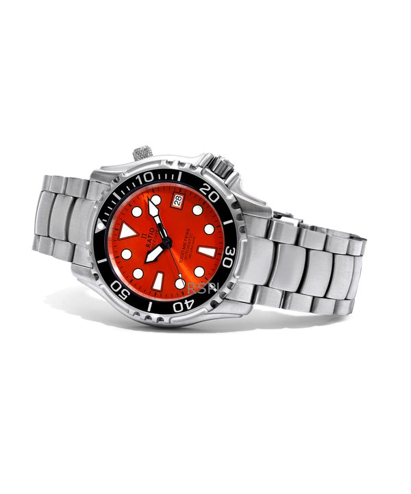 Montre pour homme Ratio FreeDiver Helium Safe 1000M Cadran orange en acier inoxydable automatique 1066KE26-33VA-ORG
