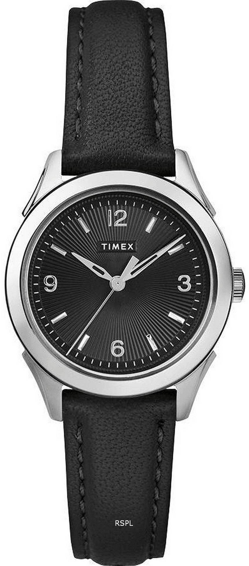 Timex Torrington cadran noir bracelet en cuir Quartz TW2R91300 montre femme