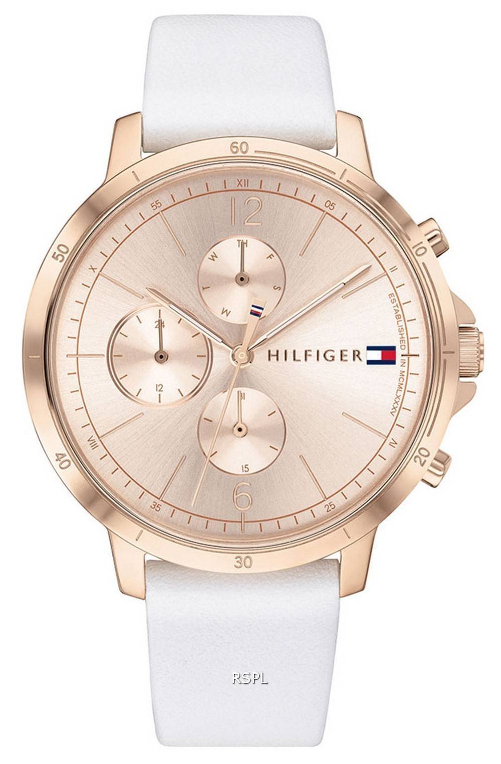 Tommy Hilfiger Madison Montre pour femme avec cadran en or rose et bracelet en cuir à quartz 1782193