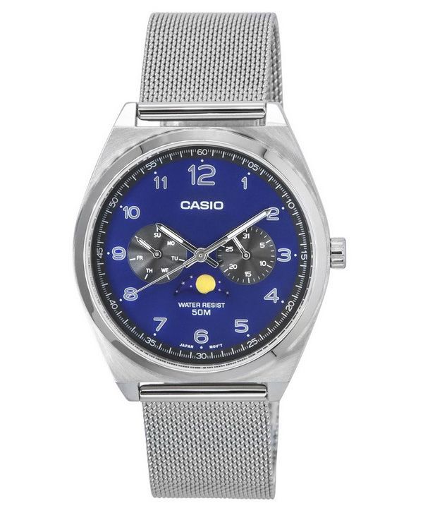 Casio Standard analogique bracelet en maille d'acier inoxydable Phase de lune cadran bleu Quartz MTP-M300M-2A mon