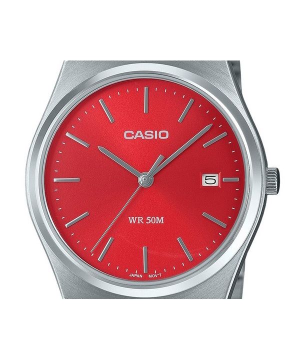 Casio Standard analogique en acier inoxydable cadran rouge Quartz MTP-B145D-4A2V montre unisexe