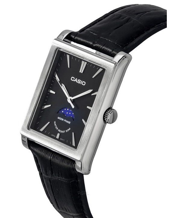 Casio Standard Analogique Phase de Lune Bracelet en Cuir Cadran Noir Quartz MTP-M105L-1A Montre Homme