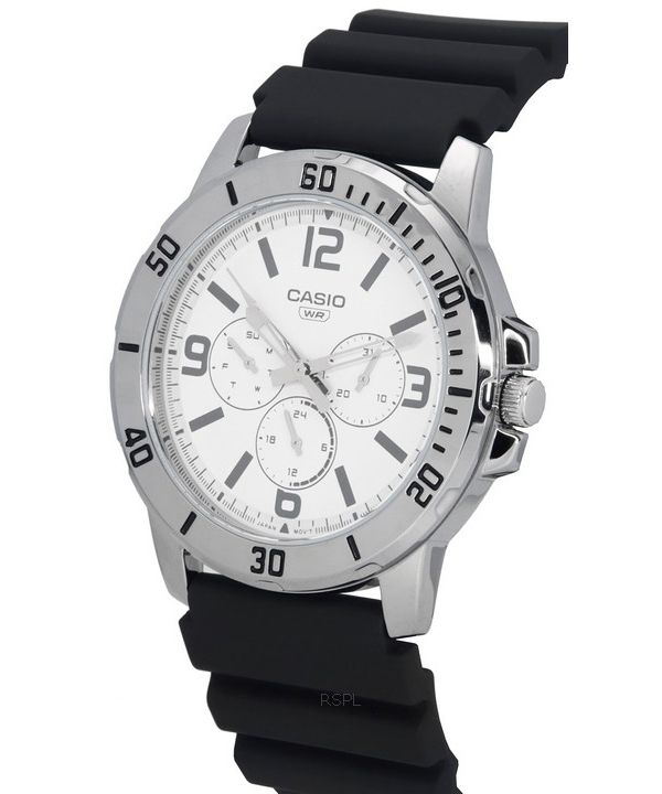 Casio Standard Bracelet en résine analogique Cadran blanc Quartz MTP-VD300-7B MTPVD300-7B Montre pour homme