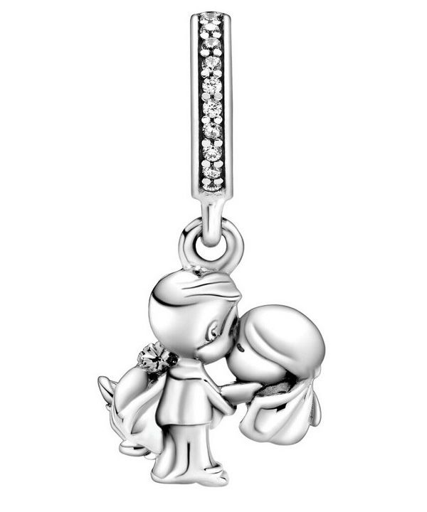 Charm pendentif Pandora Couple marié en argent sterling avec zircone cubique transparente 798896C01 pour femme