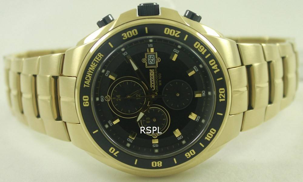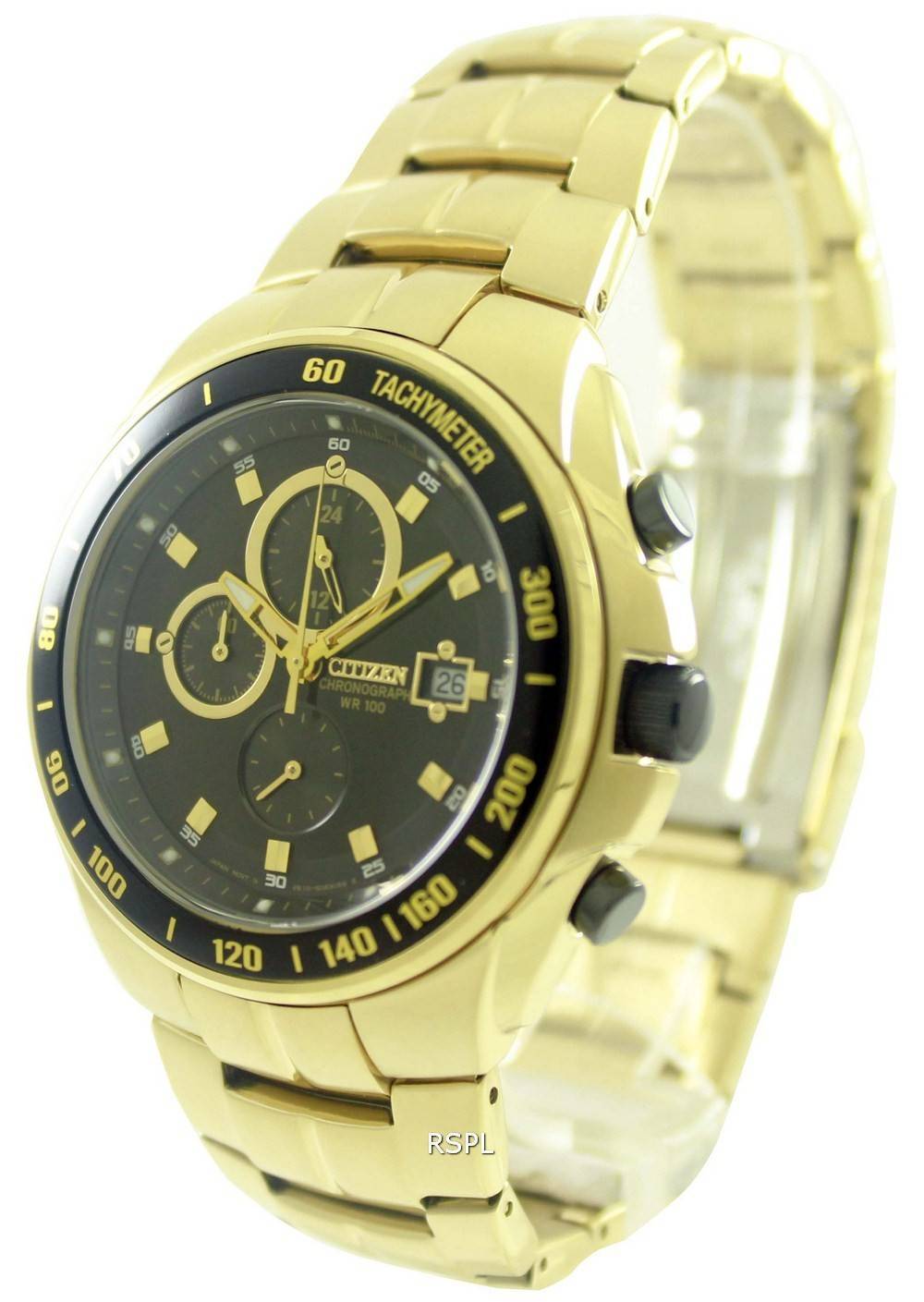 Citizen chronographe tachymètre AN4012-51F AN4012 Gold Tone montre homme