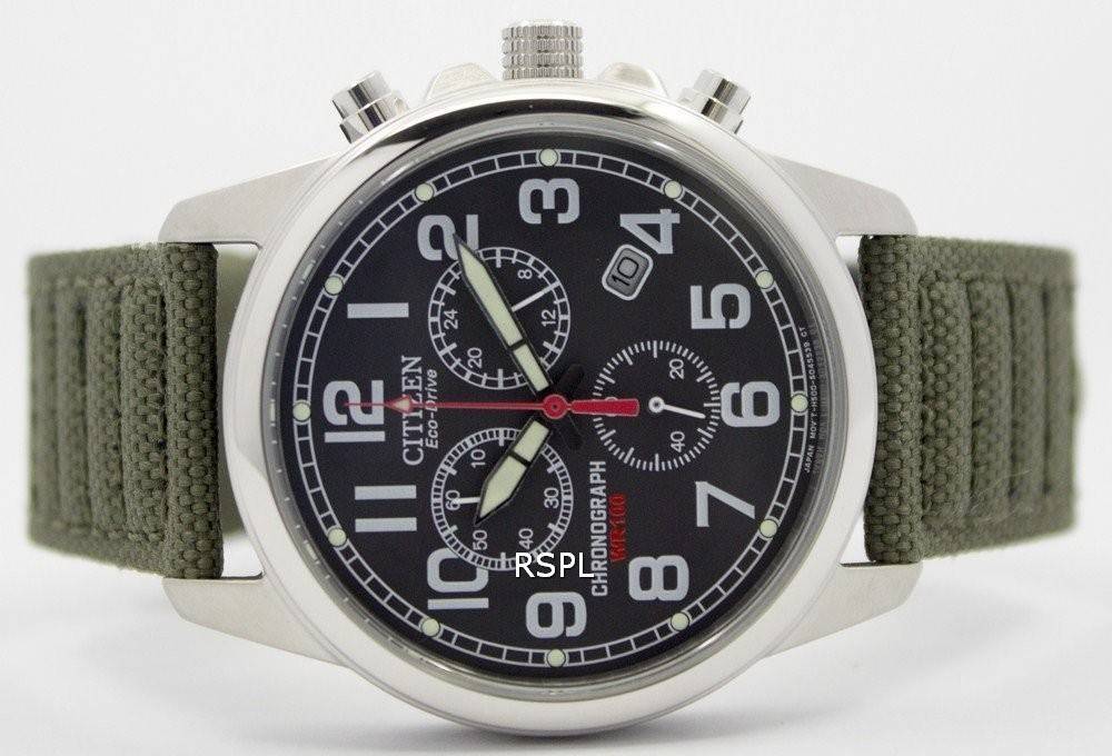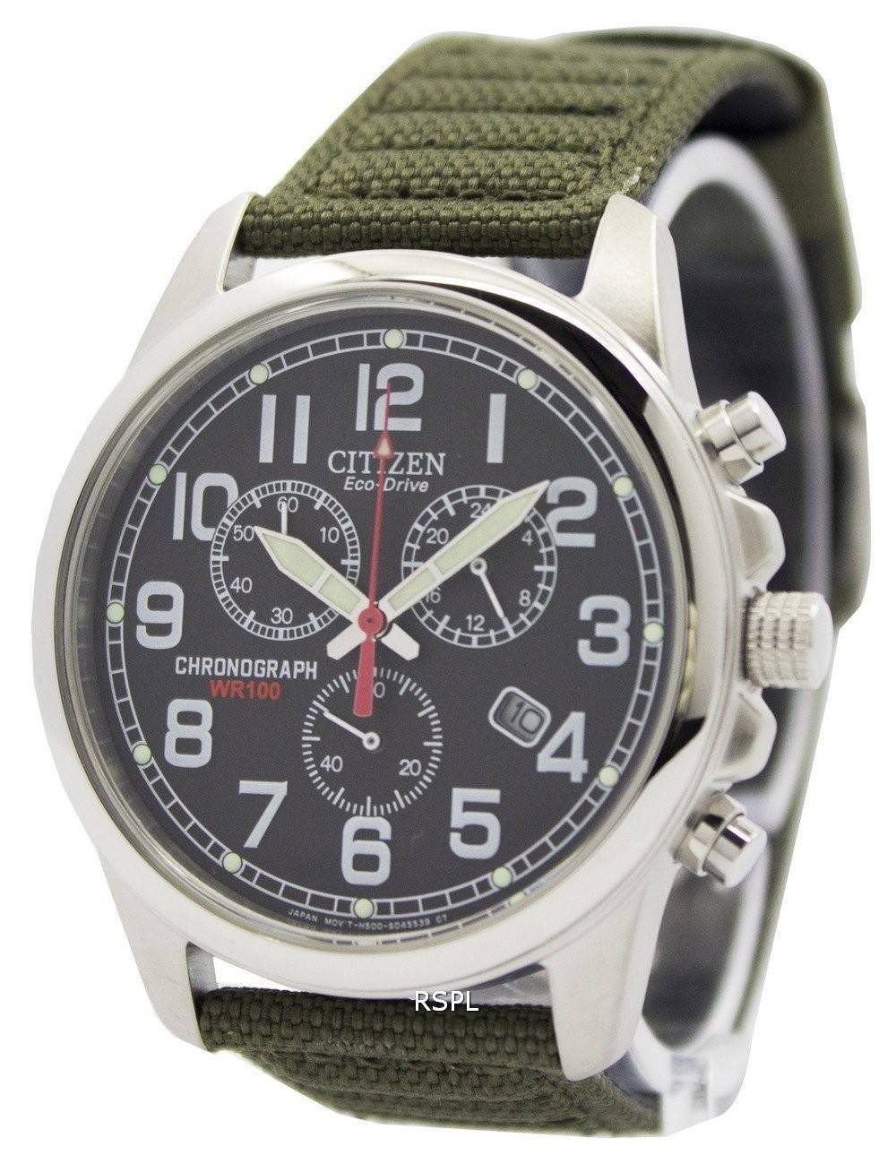 Citizen Eco-Drive Chronograph vert toile sangle 100M AT0200-05F montre homme