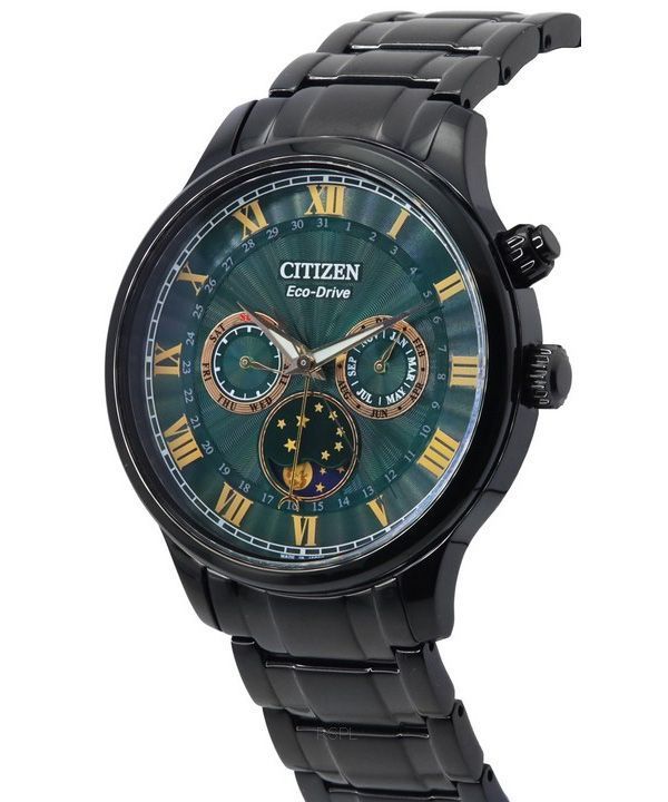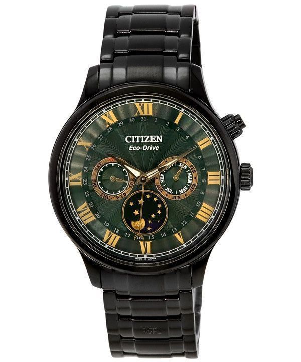 Citizen Eco-Drive Moonphase Acier Inoxydable Multifonction Cadran Vert AP1055-87X Montre Homme