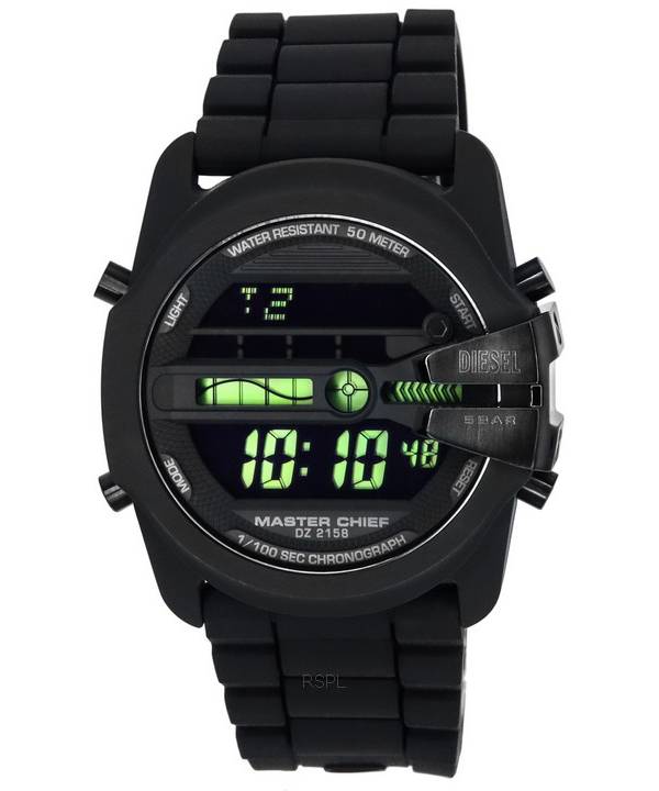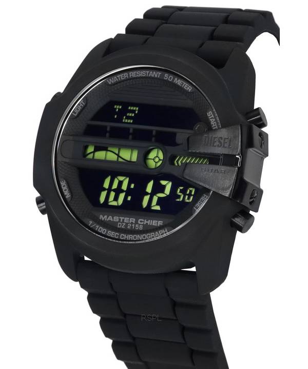 Diesel Master Chief Bracelet en silicone numérique Cadran noir Quartz DZ2158 Montre pour homme