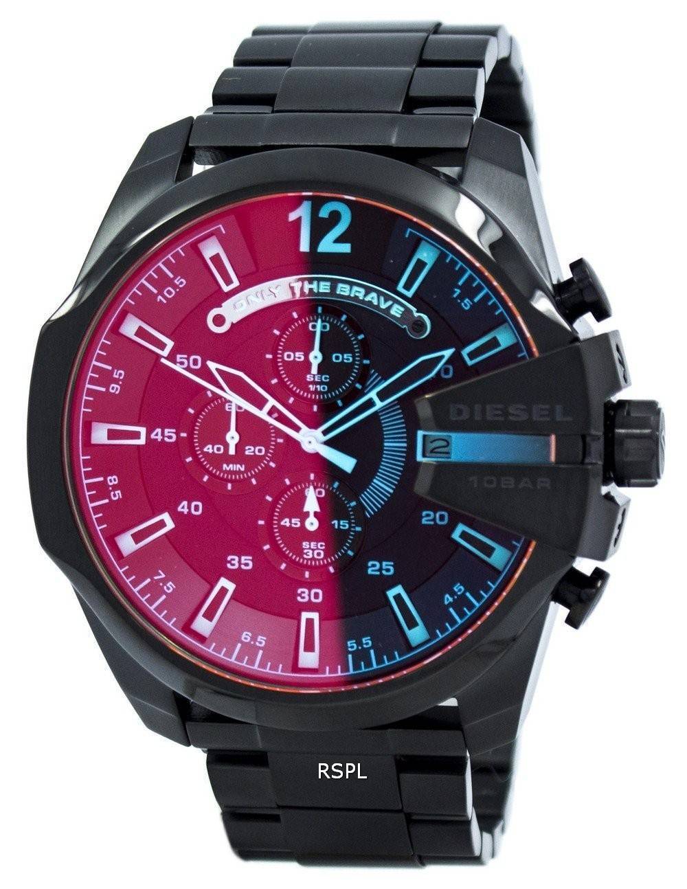 Chef de Mega diesel noir montre homme DZ4318 Dial Brown plaqué Ion
