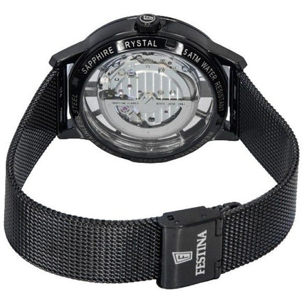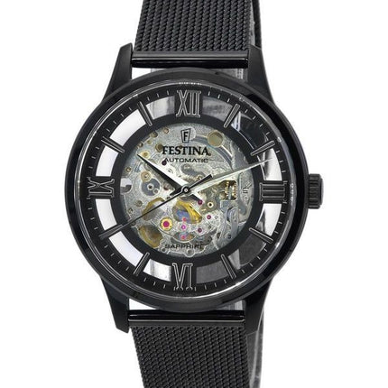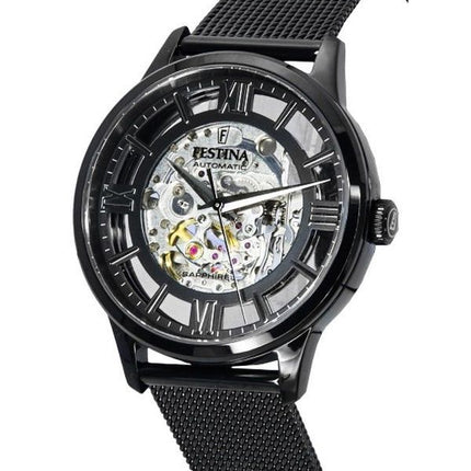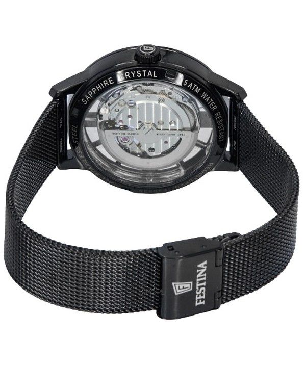 Festina Acier Inoxydable Squelette Argent Cadran Automatique F20535-1 F205351 Montre Femme