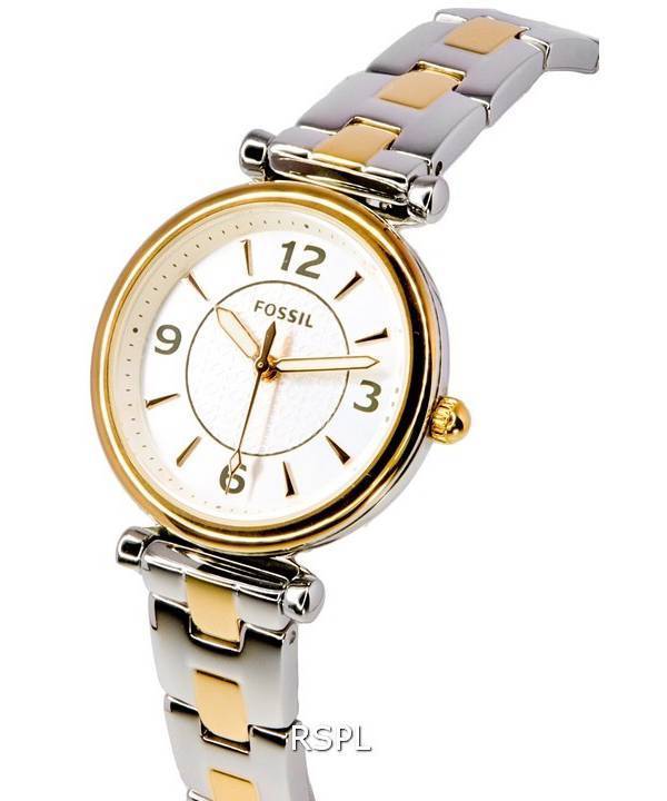 Fossil Carlie Two Tone Acier Inoxydable Argent Cadran Quartz ES5201 Montre Femme