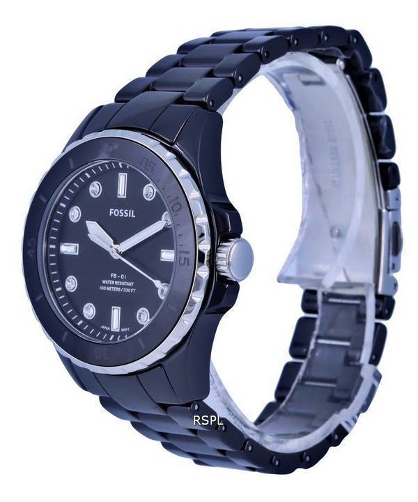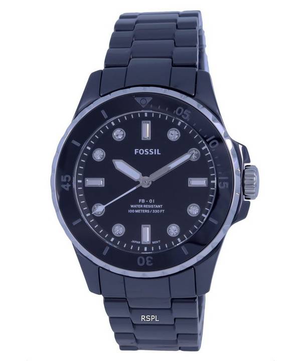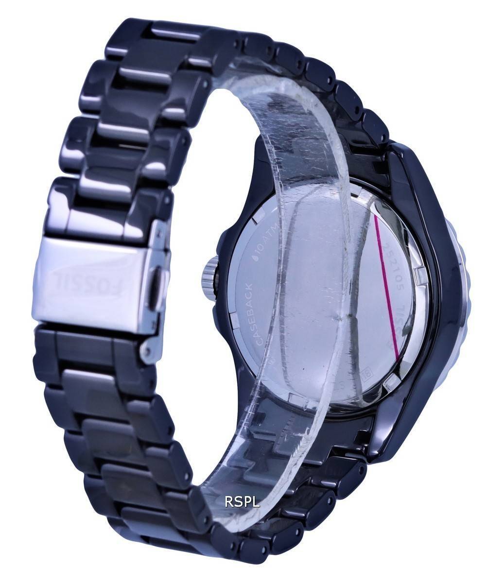 Fossil FB-01 Analogique Céramique Cadran Noir Quartz CE1108 100M Montre Femme