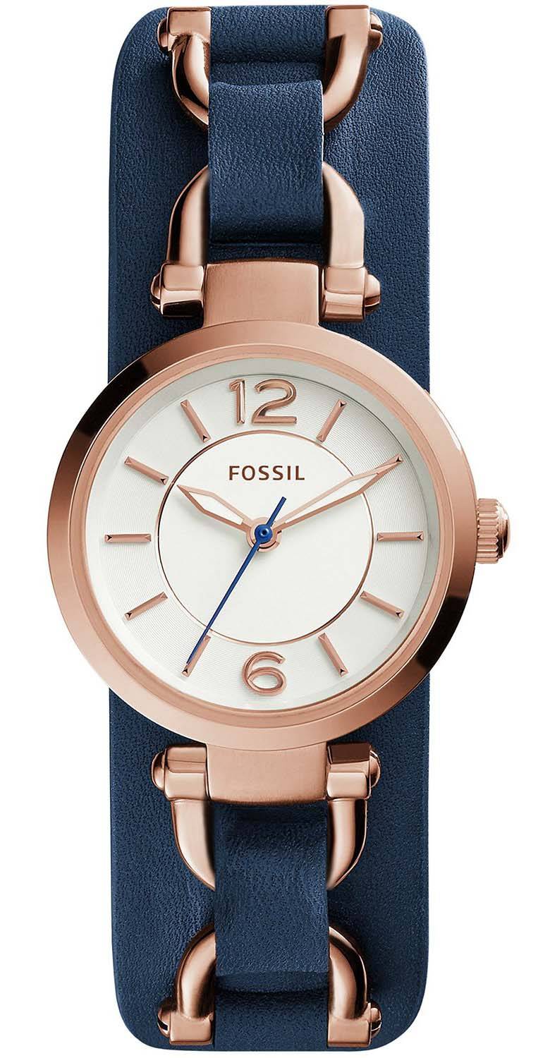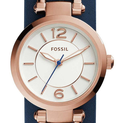 Fossiles montre Géorgie Artisan cadran blanc en cuir bleu marine ES3857 féminin