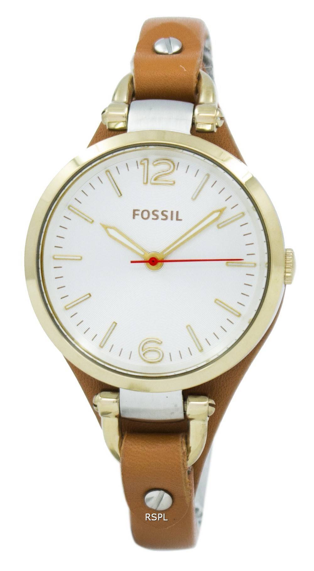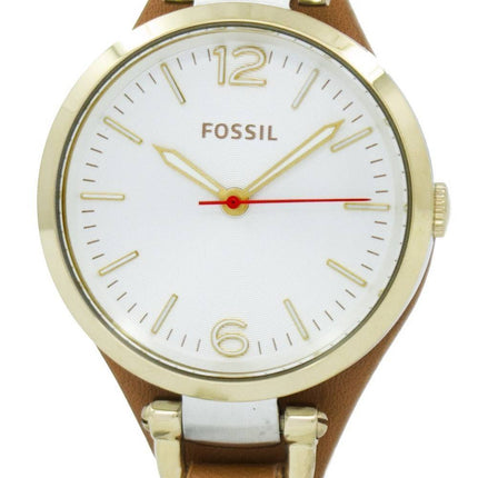 Fossil Georgia White Dial Rose Gold Tone bracelet en cuir brun ES3565 Montre Femme
