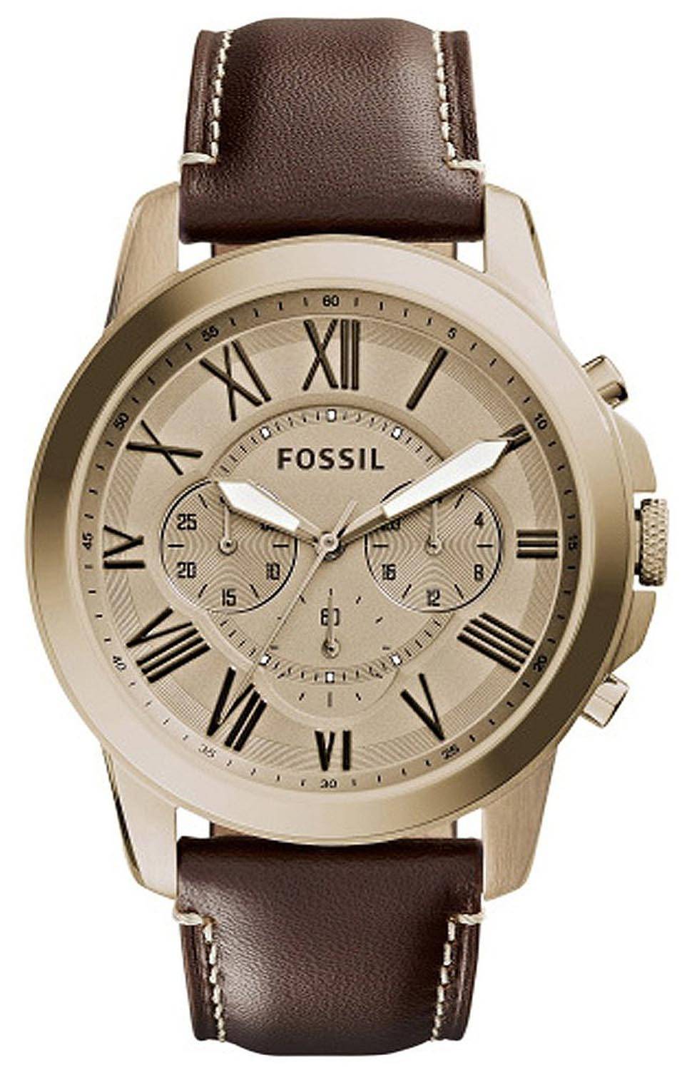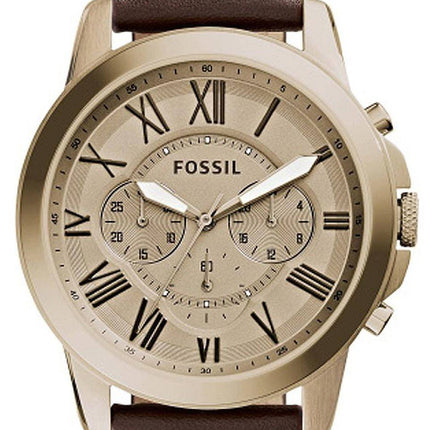 Accorder des fossiles montre chronographe cadran doré en cuir brun FS5107 masculin