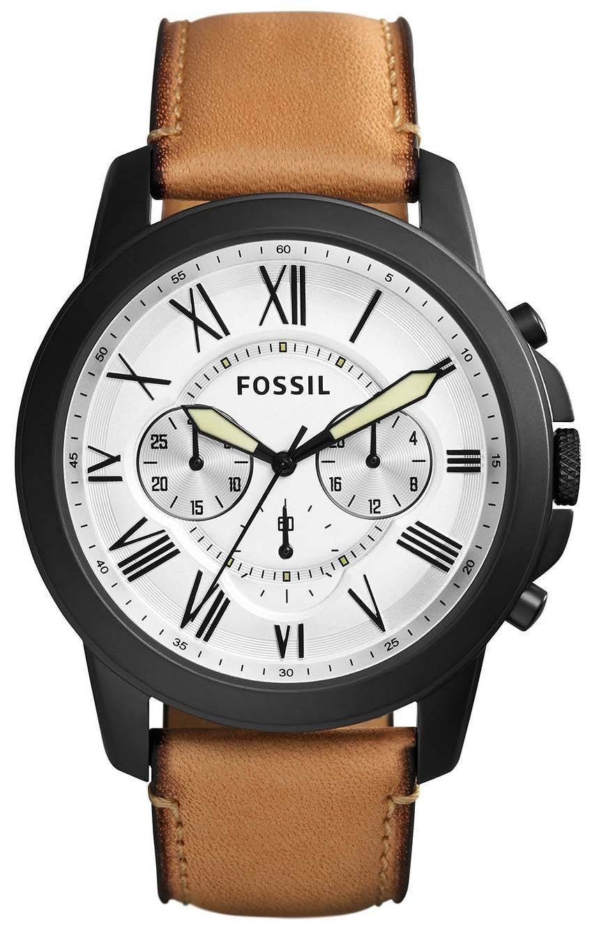Fossiles Grant blanc cadran chronographe en cuir brun FS5087 montre homme