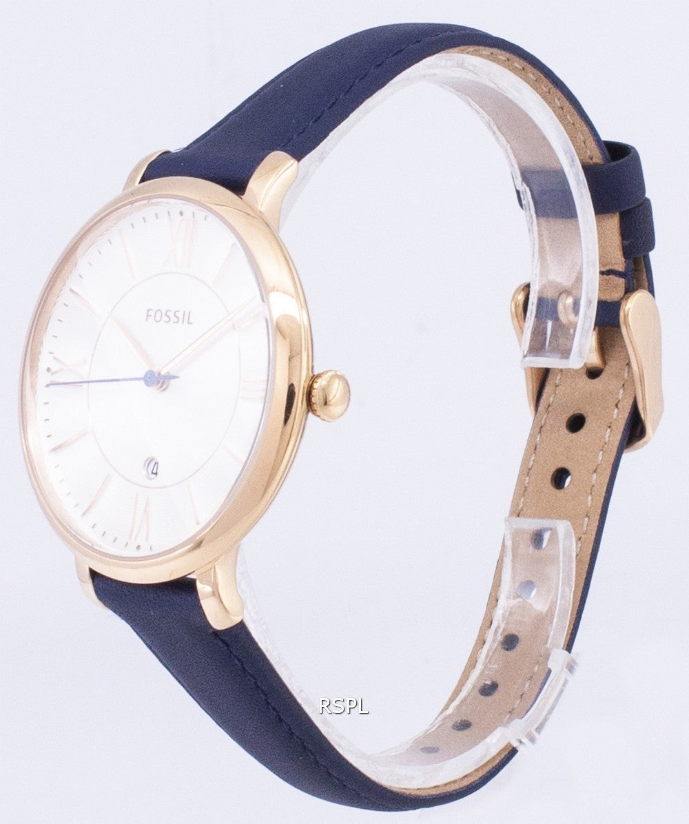 Fossiles Jacqueline Silver cadran de montre de cuir bleu marine ES3843 féminin