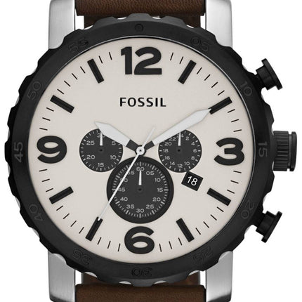 Fossiles montre chronographe Nate en cuir brun JR1390 masculin