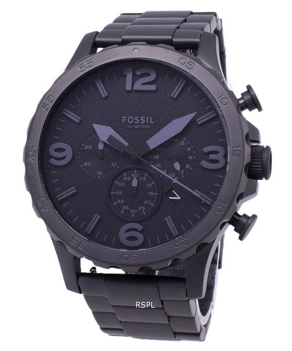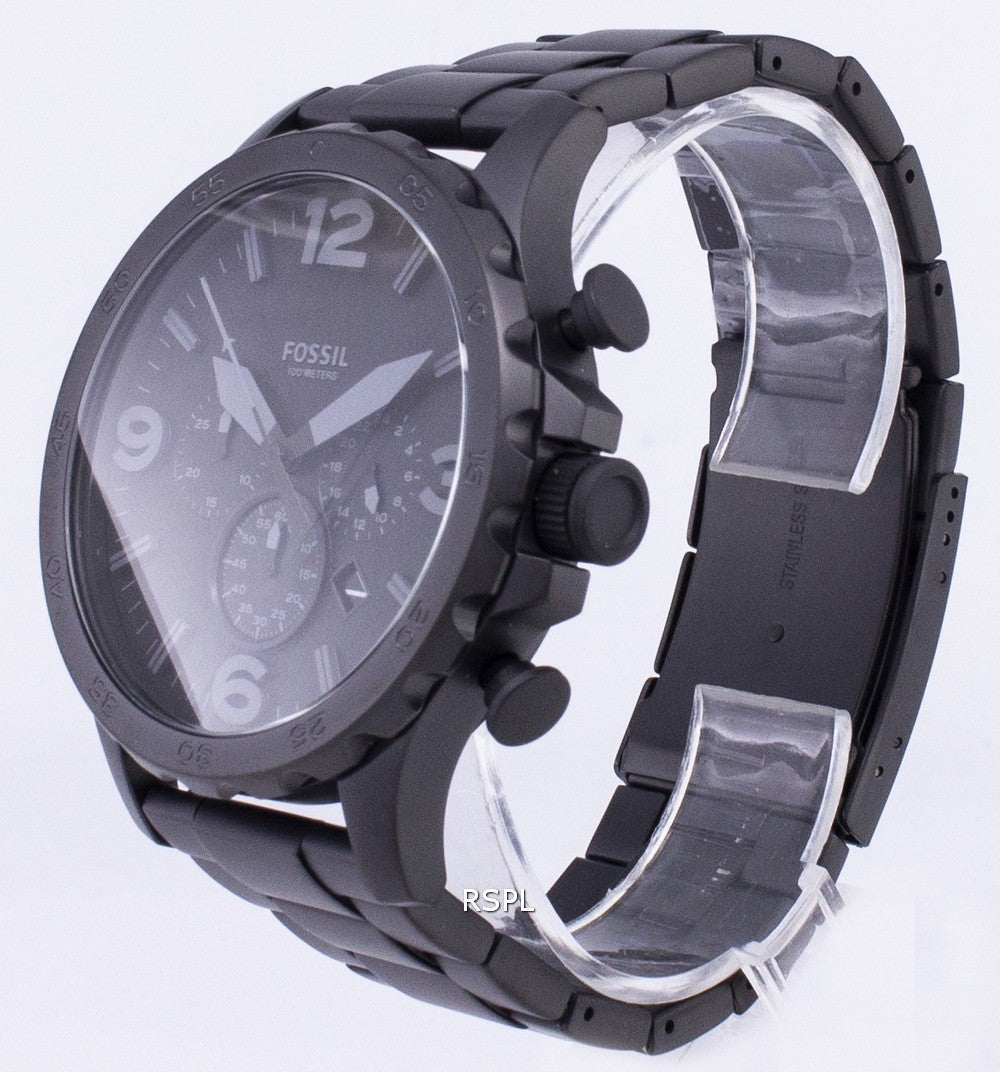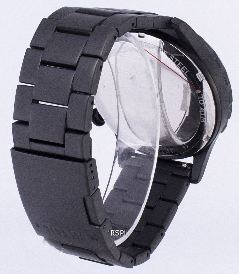 Fossiles Nate chronographe cadran noir noir JR1401 Ion-plaqué montre homme