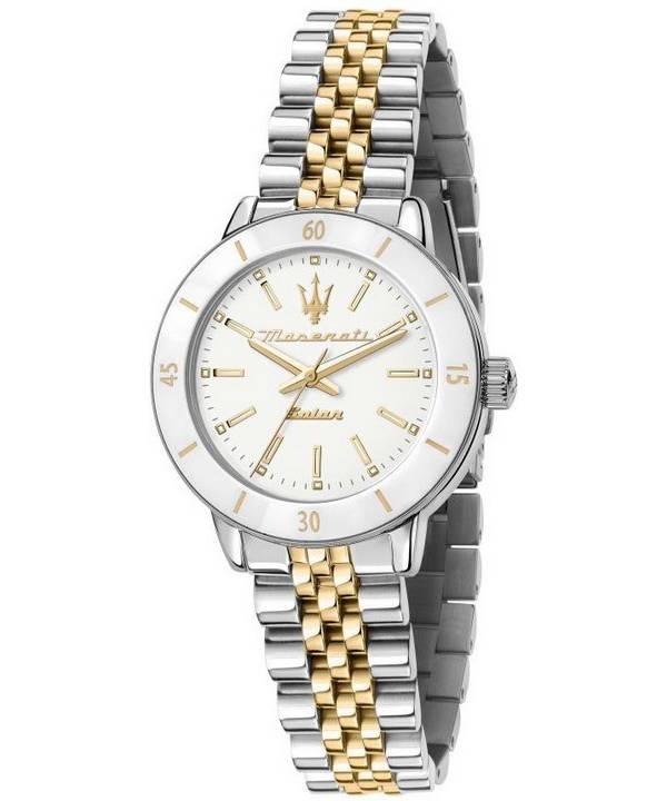 HORS Montre pour femme Maserati Successo en acier inoxydable à deux tons avec cadran blanc solaire R8853145514
