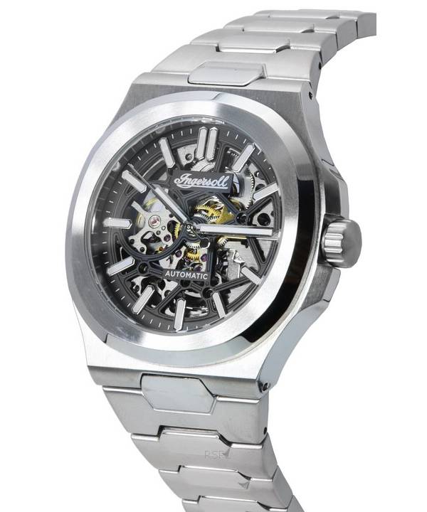 Ingersoll The Catalina Acier Inoxydable Squelette Cadran Noir Automatique I12501 Montre Homme