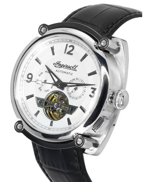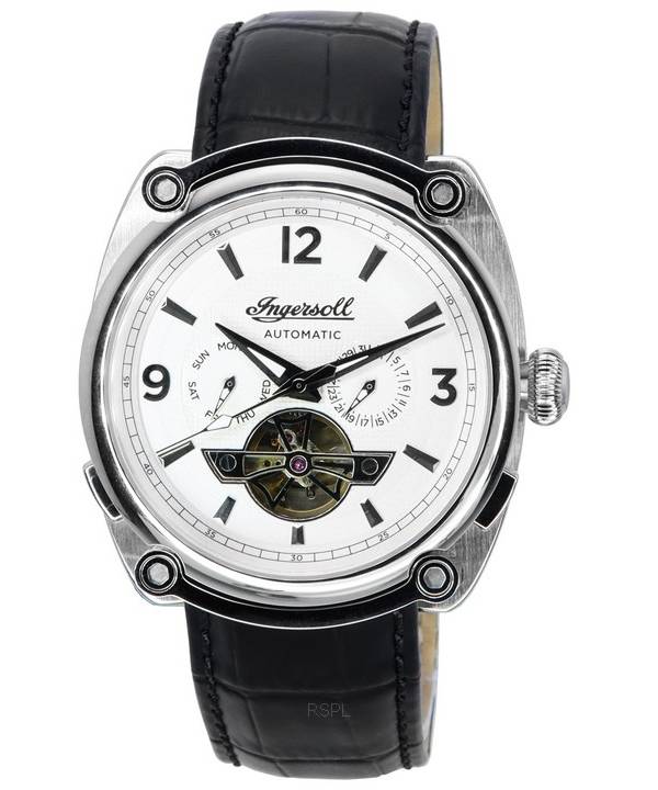 Ingersoll The Michigan Bracelet en cuir Argent Open Heart Cadran Automatique I01105 Montre Homme