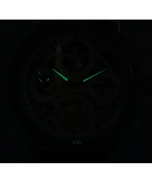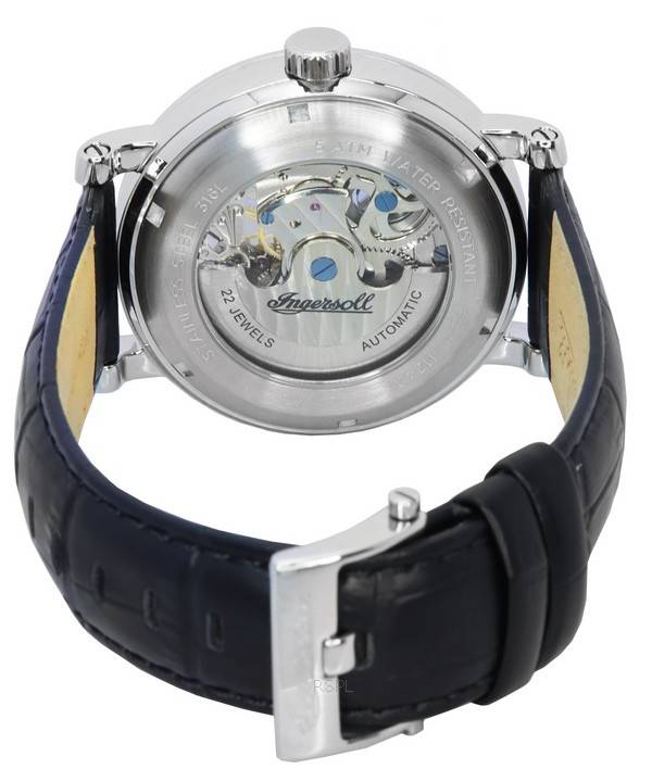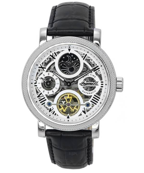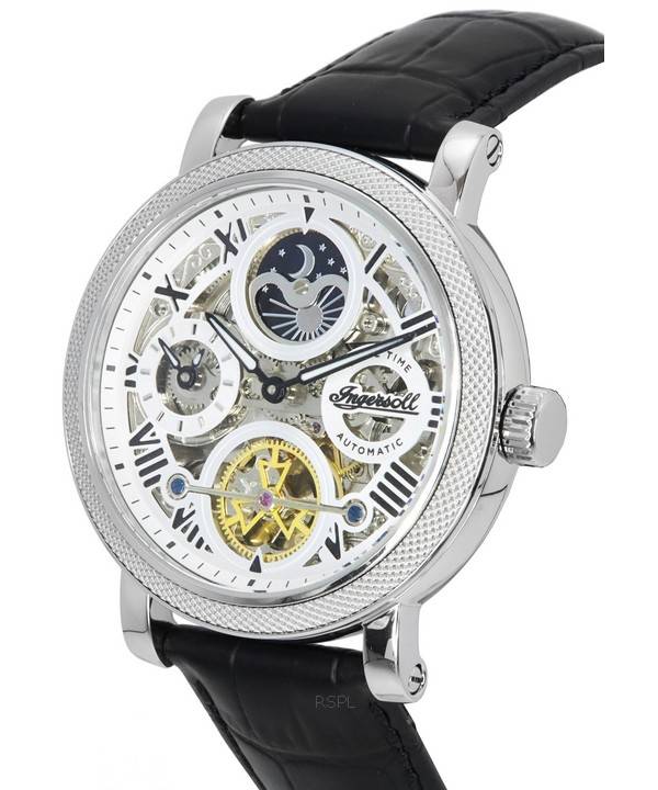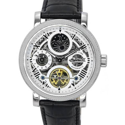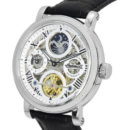 Ingersoll The Row Sun And Moon Phase Bracelet en cuir Cadran argenté squelette Automatique I12401 Montre pour homme