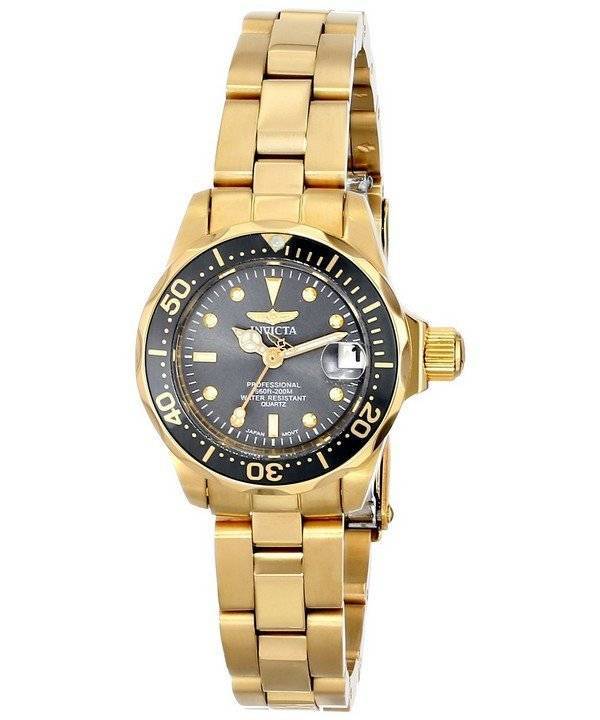 Invicta Pro Diver 200M Quartz IP Gold cadran noir de 14986 femmes