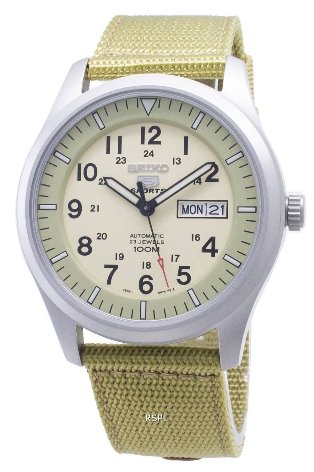La montre de Seiko 5 Sports Automatique SNZG07K1 SNZG07K SNZG07 militaire sangle en nylon hommes