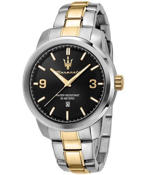 Maserati Successo Deux Tons Acier Inoxydable Cadran Noir Quartz R8853121009 Montre Homme