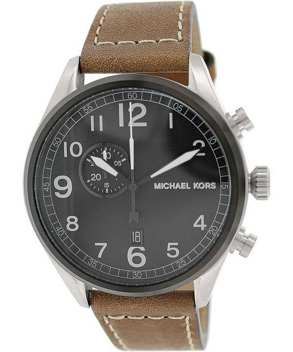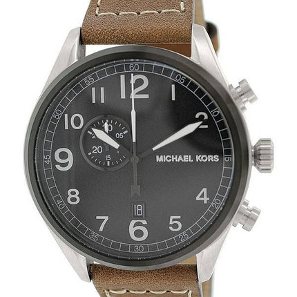 Montre Michael Kors Hanger hommes cadran noir en cuir marron MK7068