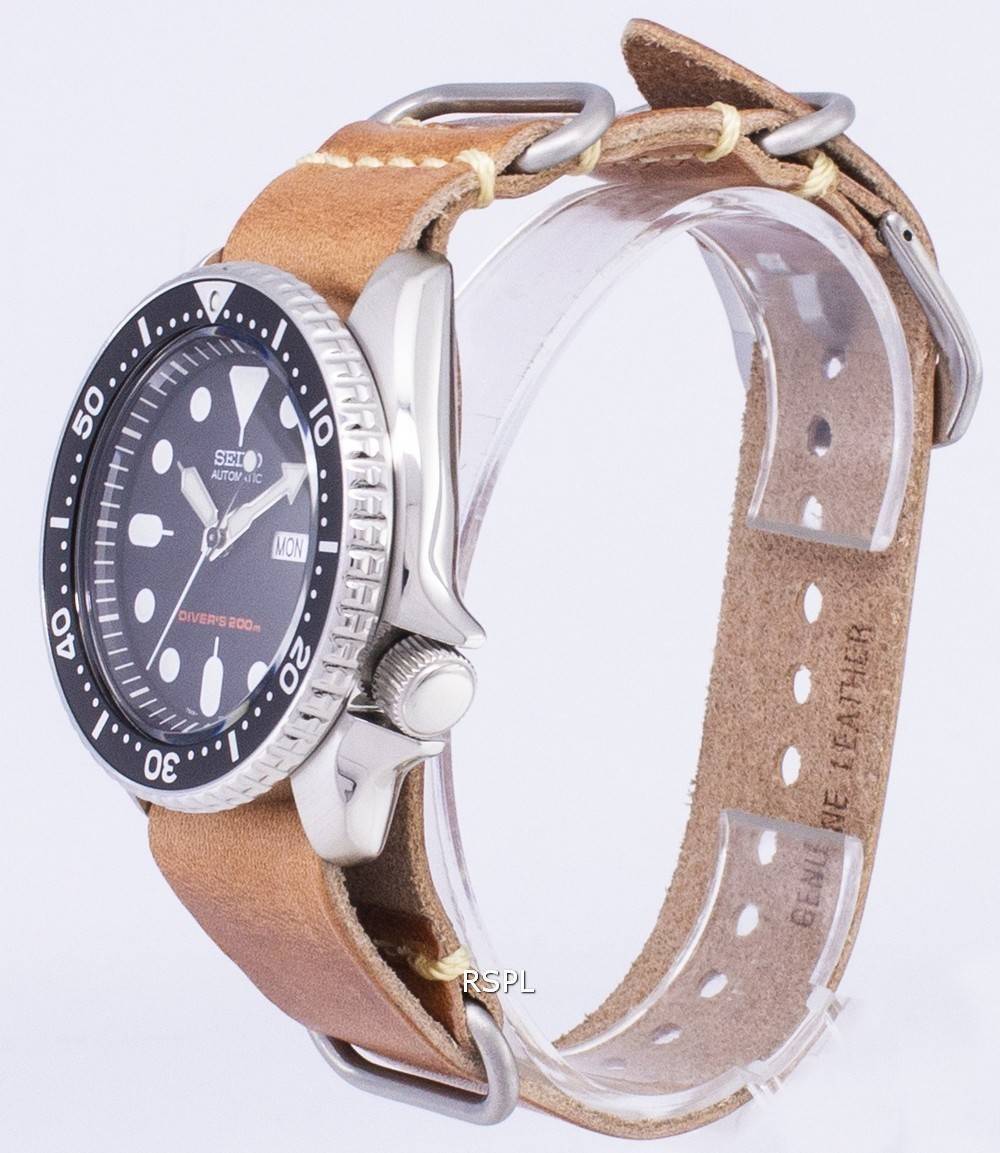 Montre 200M cuir marron bracelet masculin automatique Seiko SKX007K1-LS18 Diver