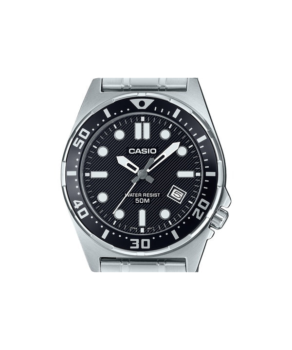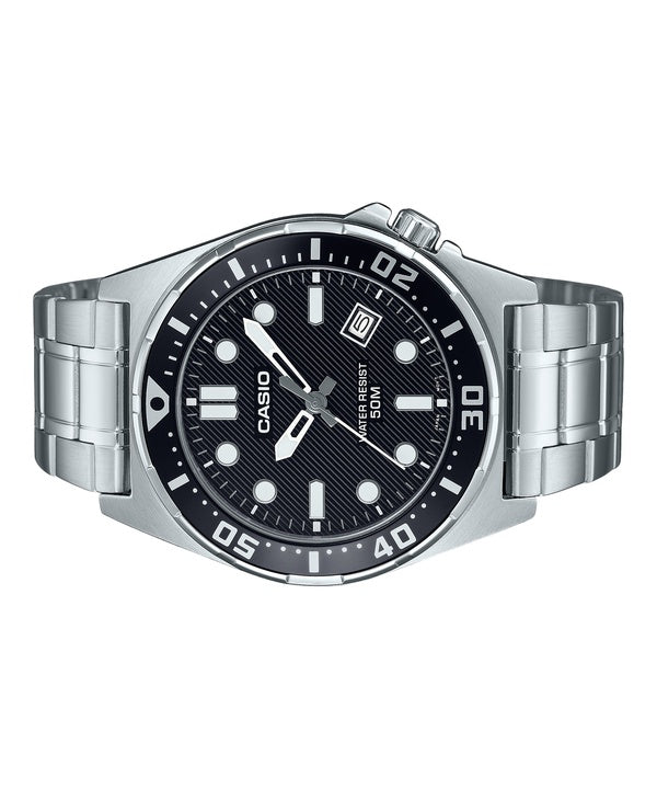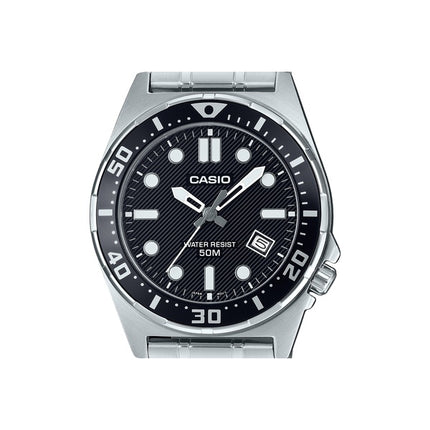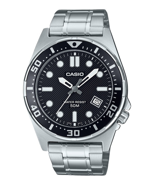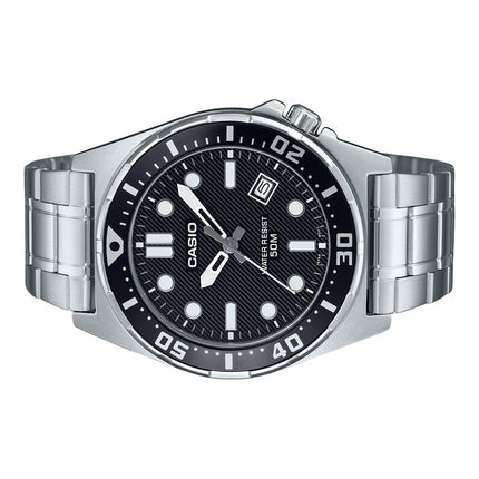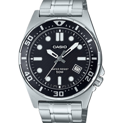 Montre analogique à quartz Casio pour homme MTD-135D-1AV avec cadran noir et acier inoxydable