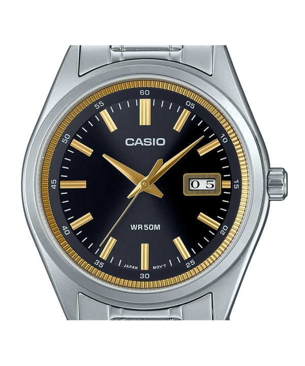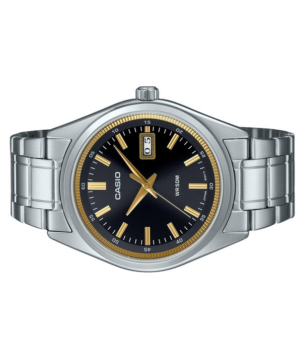 Montre analogique à quartz Casio Standard en acier inoxydable avec cadran noir MTP-B180D-1A2V pour homme