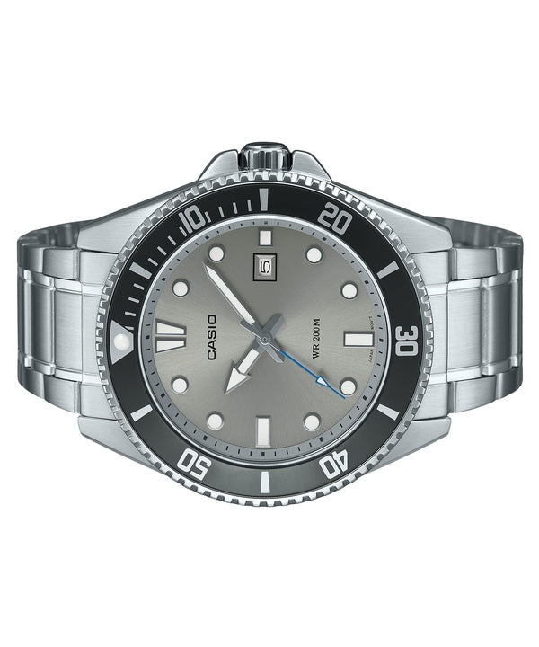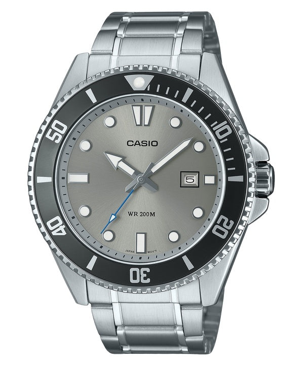 Montre analogique Casio pour homme avec cadran gris et quartz, en acier inoxydable, 200 m, MDV-107D-8AV
