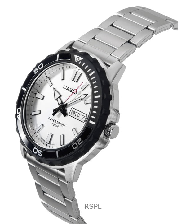 Montre analogique Casio pour homme, bracelet en acier inoxydable, cadran argenté, quartz, 100 m, MTD-125D-7AV