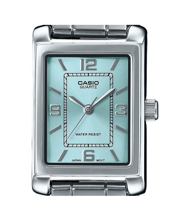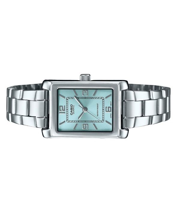 Montre analogique Casio Standard en acier inoxydable avec cadran bleu aqua et quartz LTP-1234DD-2A pour femme
