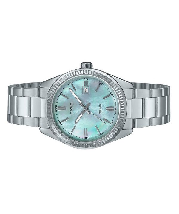 Montre analogique Casio Standard en acier inoxydable avec cadran en nacre et quartz LTP-1302DS-2AV pour femme