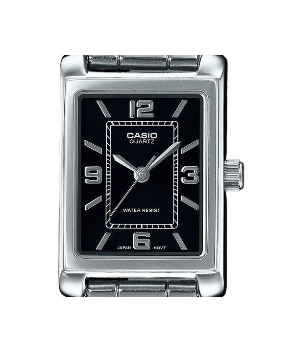 Montre analogique Casio Standard en acier inoxydable avec cadran noir et quartz LTP-1234DD-1A pour femme
