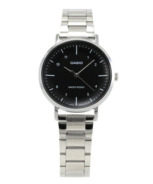 Montre analogique Casio Standard en acier inoxydable avec cadran noir et quartz LTP-VT03D-1B pour femme